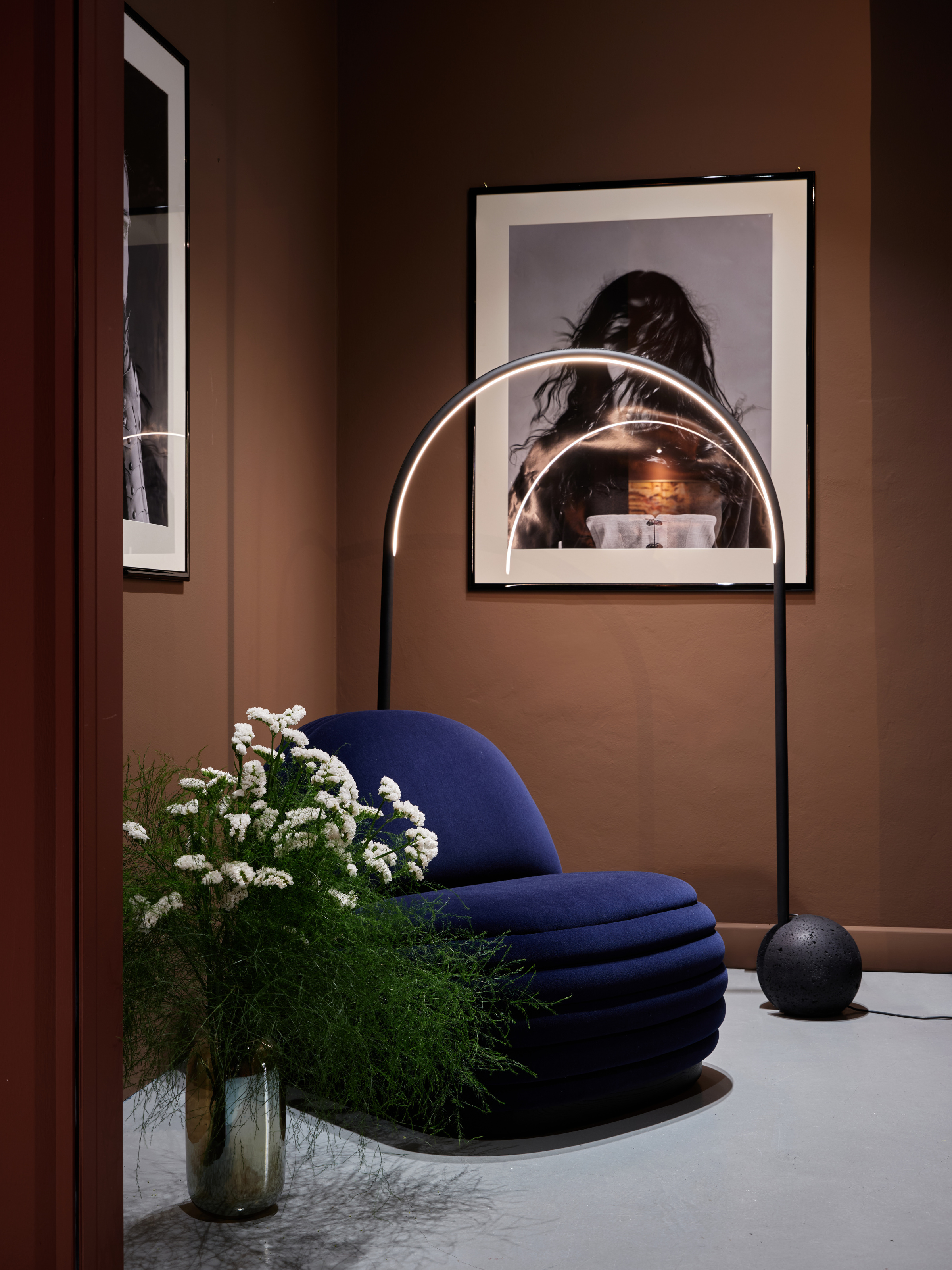 - At Milan Design Week 2025, the “Inspired Nuances” exhibition brought together the talents of French designers Mercœur and Franck Genser, American paint brand Tonester, and Sixtysix magazine Editor-in-Chief, Chris Force. Above, PULSE armchair by Joëlle Rigal and SÉRIF floor lamp by Marina Declarey of Mercœur. Photography by Chris Force. Photo courtesy of S2H