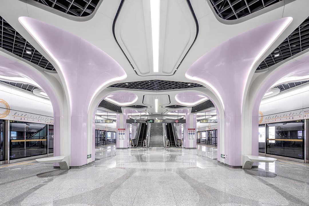 + Designed by J&A and Sepanta Design, the futuristic metro station interiors are based on local silk weaving and plants found in the surrounding parks.