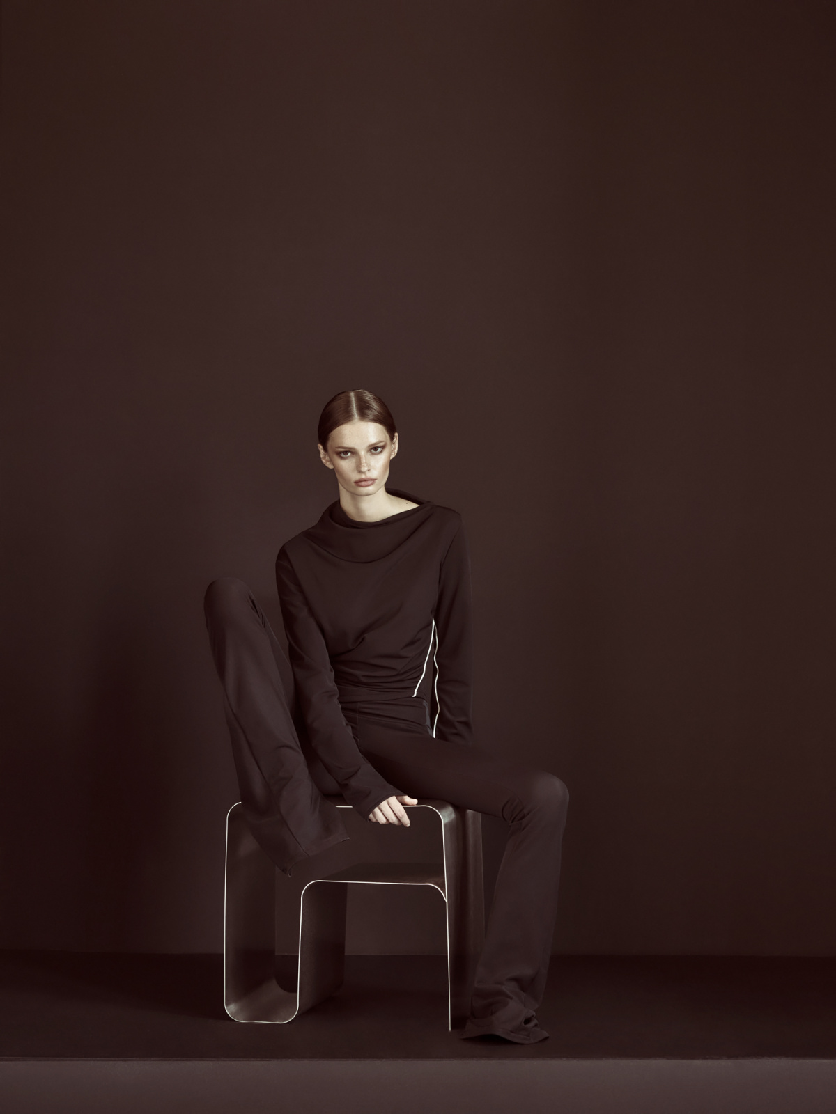 - Top and pants from JADE CROPPER F/W ’25 look 27. Venu iron side table by HUEGAH HOME