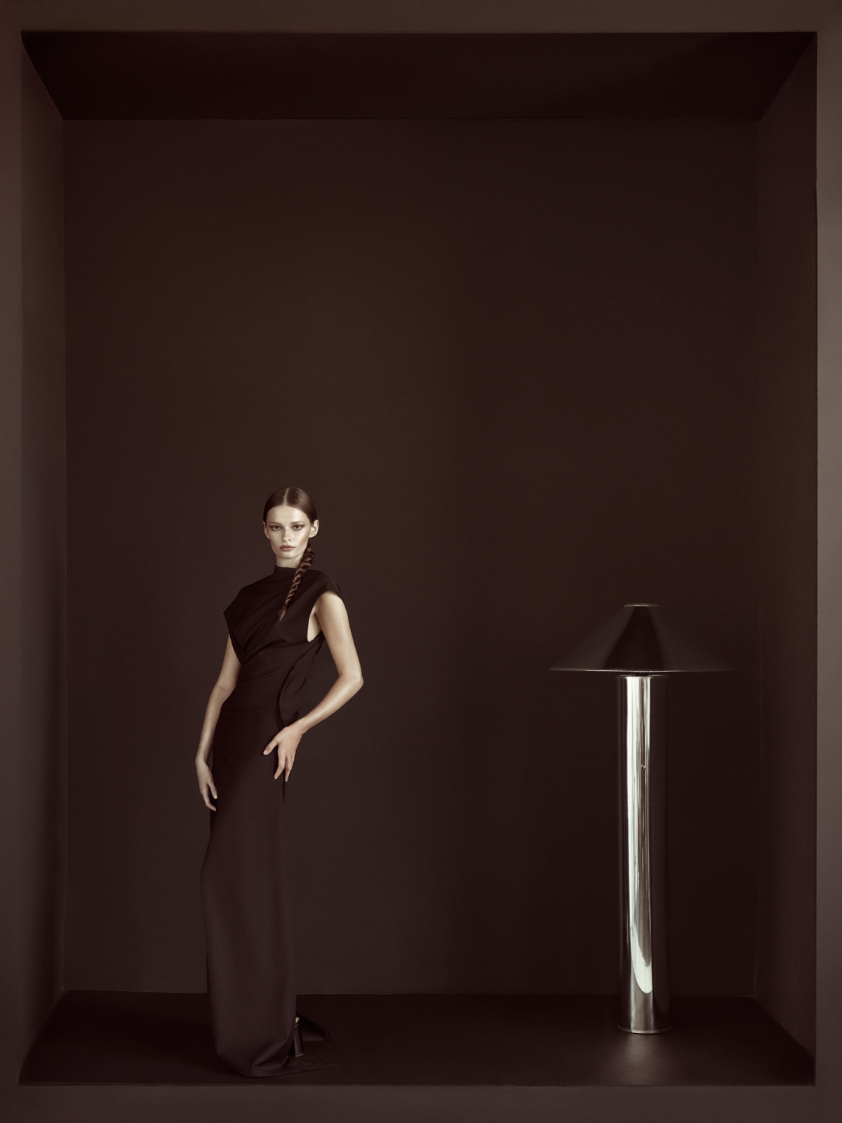 - Dress from JADECROPPER F/W ’25 look 21. Carlyle floor lampfrom HUEGAH HOME.