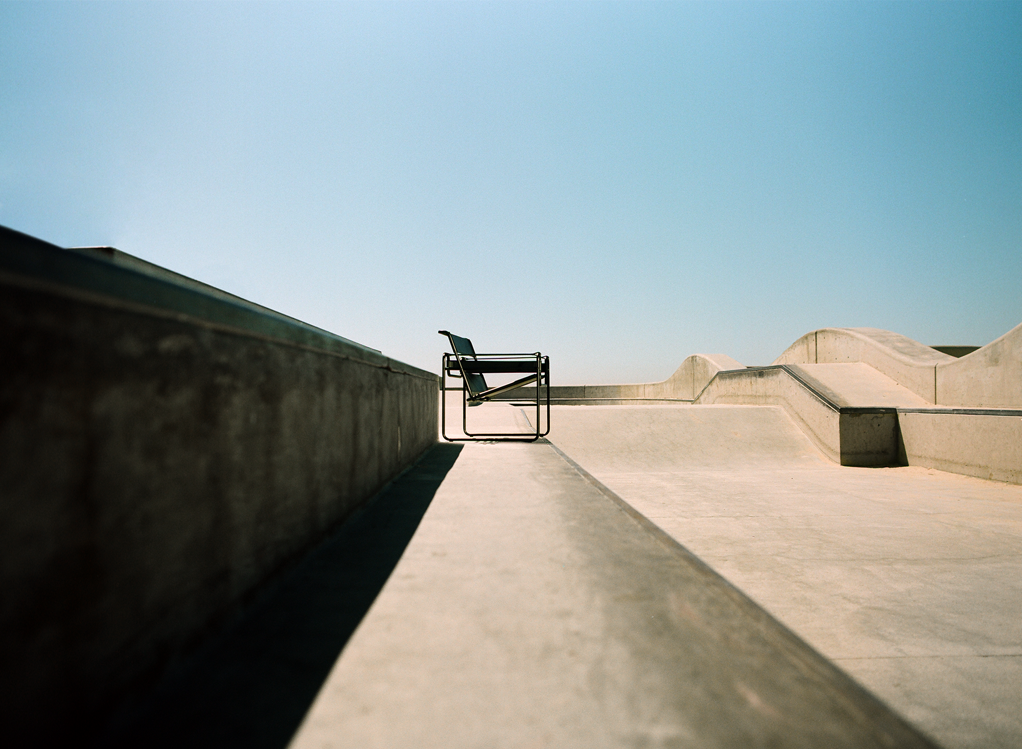 Adam photographed the chairs in in four locations across Los Angeles, including Venice Beach skatepark. The curving architecture mirrors the sculptural quality of the designs.