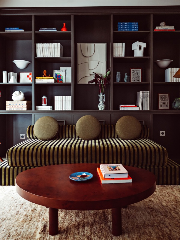 Hôtel des Académies et des Arts, Paris. Shelves and seat are custom designs. Photo by Benoit Linero