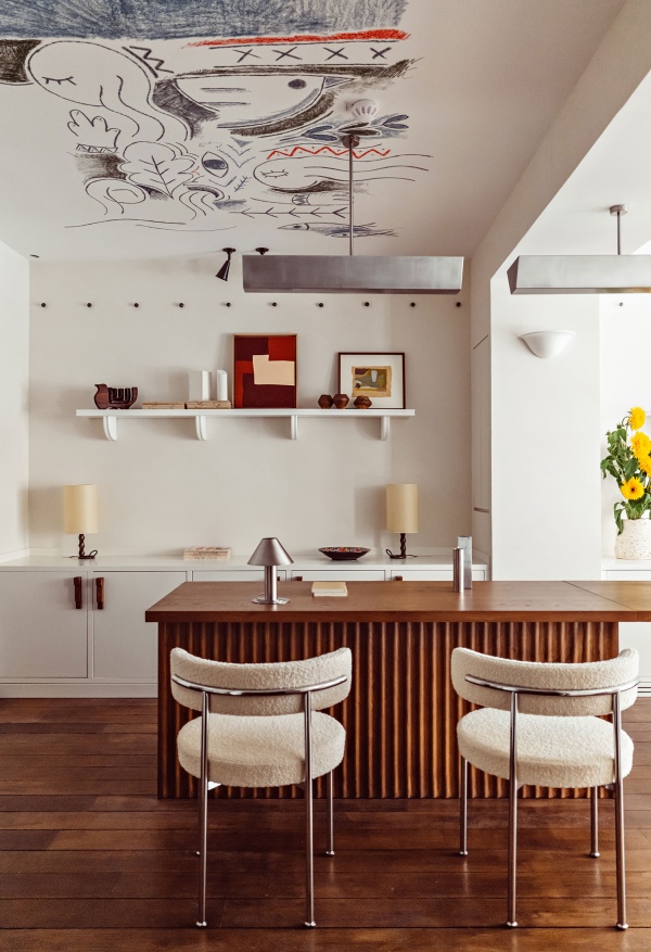 “Before the kitchen was like an office so we built everything to measure. Craftspeople are very important in our vision of the entire design. What is most interesting and personal is to be able to build the furniture, everything. We are lucky enough to have clients who ask us to do it.”