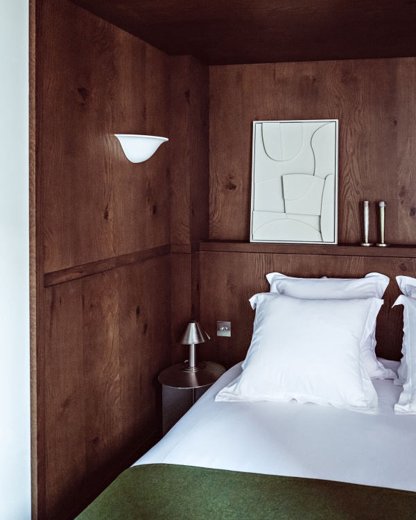 “The building was an old atelier in Montparnasse where a lot of famous artists—Modigliani, Pablo Picasso, Fujita—used to work and live. With this hotel we wanted to have an atelier’s feeling. The furniture, and every material, is either a work of art or very natural to keep this artistic point of view.”