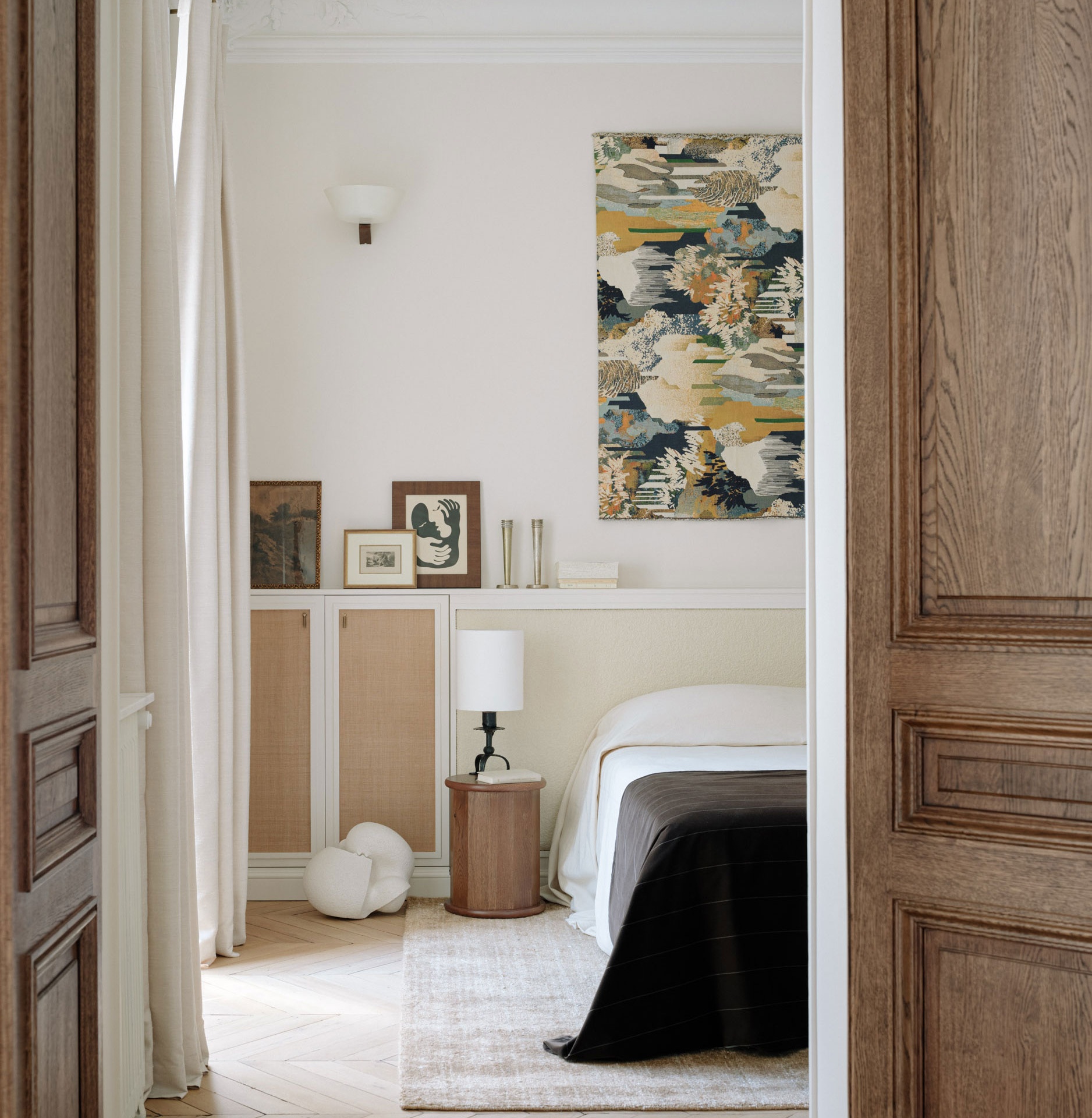 “It’s a young family’s apartment in Musée Rodin’s neighborhood, so we made this very pure, modern, Rodin-inspired style. It’s like a sculptor’s atelier, with little touches to remind you of the museum. For instance, the floor is made of stones from Burgundy. You always need this kind of balance between sobriety and strong details. The contrast makes the space feel very soft but with character as well.”