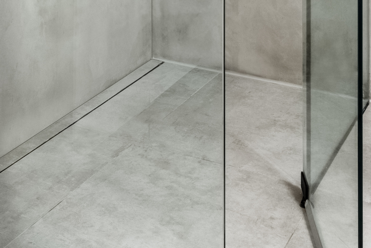 Linear Drain with tile insert frame from Infinity Drain. Tile by Atlas Concorde USA