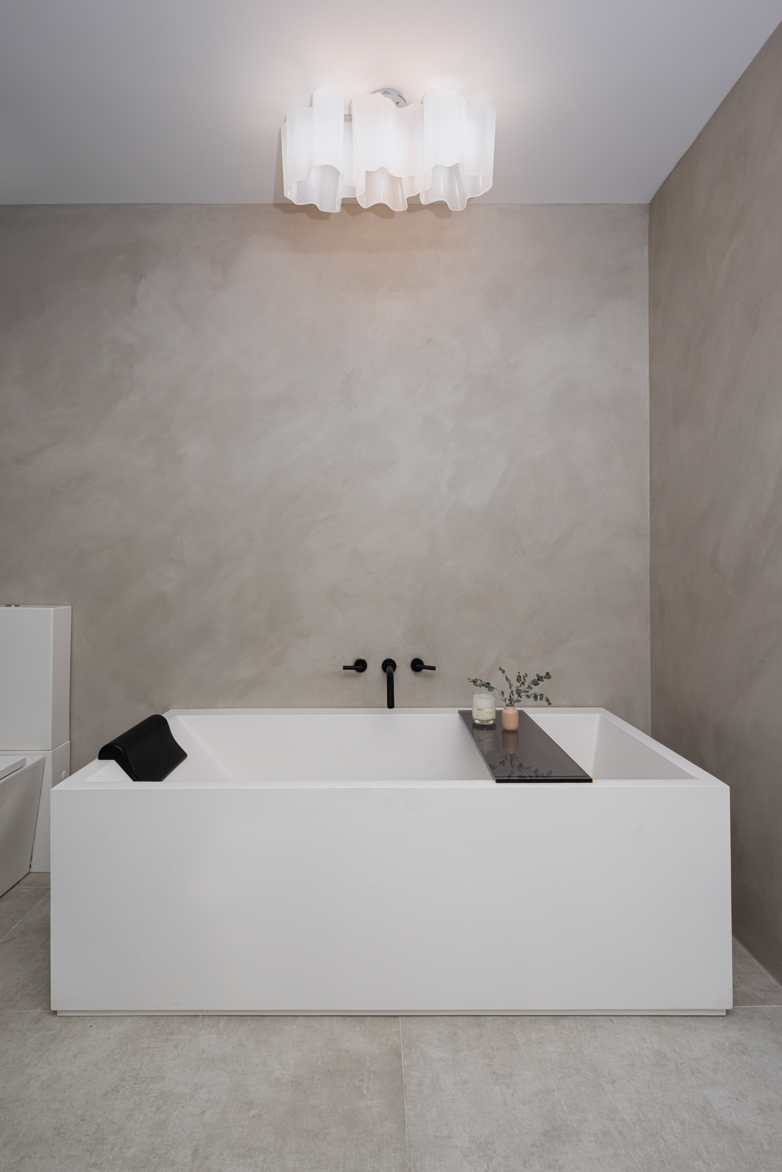 From a practical standpoint we really wanted a niche in the shower with the cleanest lines possible. We landed on covering the walls and the niche with Venetian plaster. Since it’s completely waterproof we were able to wrap everything in it with no seams. It also provided a waterproof backdrop for our wall-mounted trim.
