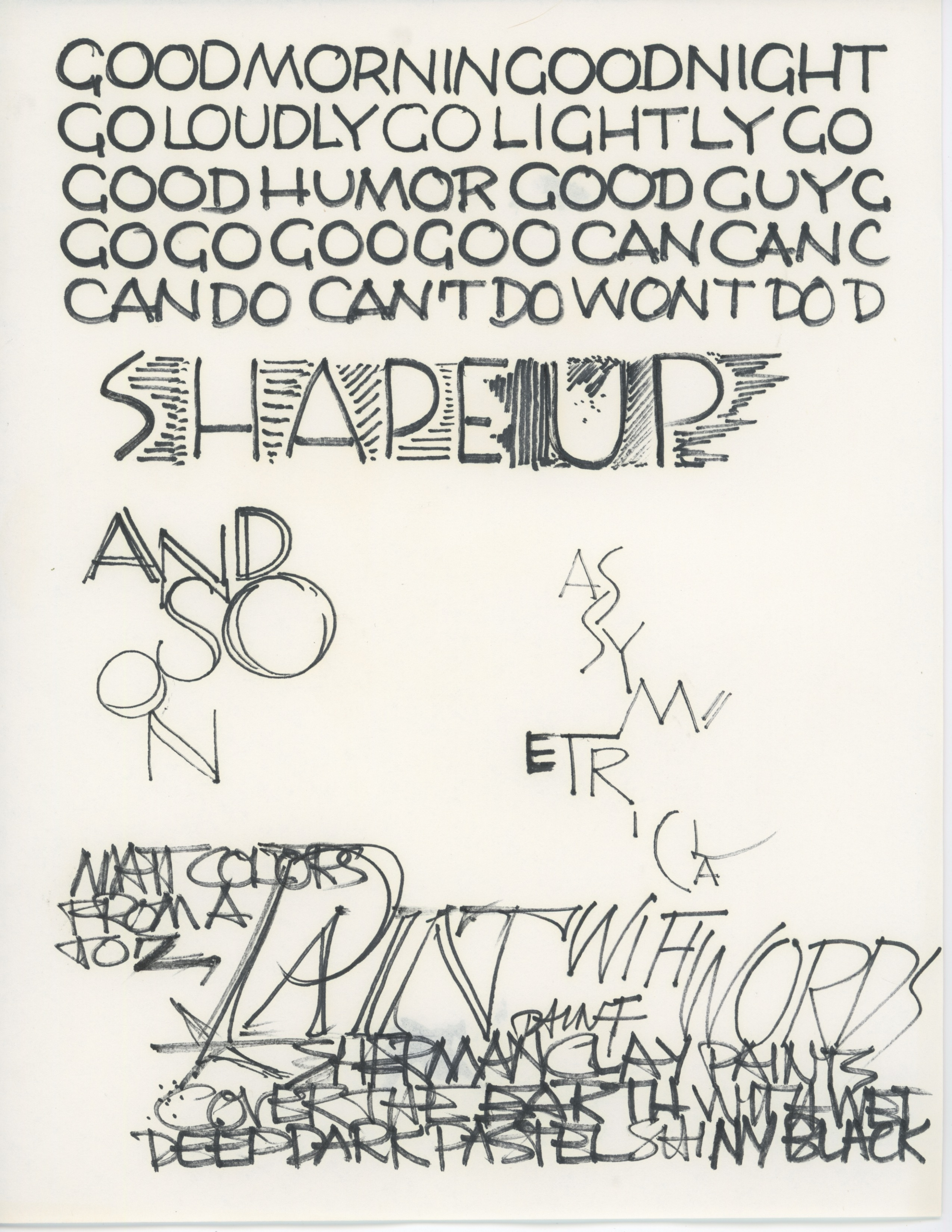 - “Shape Up and So On” Calligraphy, n.d., Lucia Eames. Work and Image © 2022 Eames Office, LLC dba Lucia Eames Archives