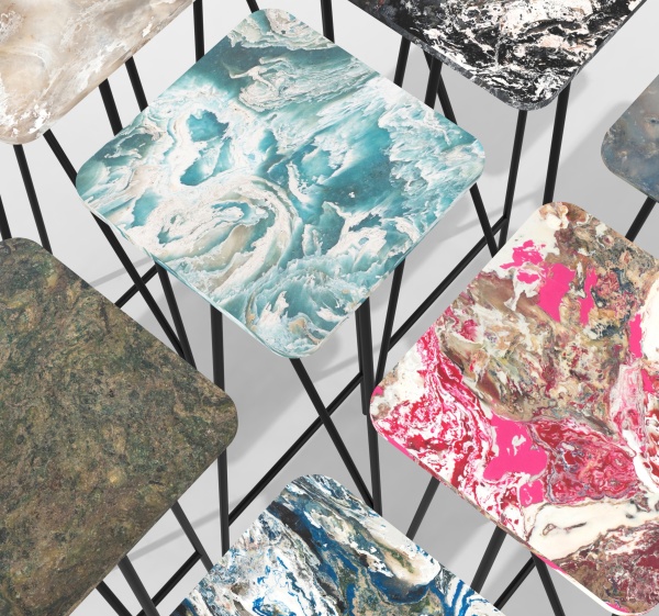 Anga, cofounded by Alexandre Alimi and Valentine d’Harcourt, is revolutionizing the use of plastic waste. Alexandre transformed plastic waste by melting it down on his kitchen stove and forming into usable slabs to create an environmentally friendly marble.