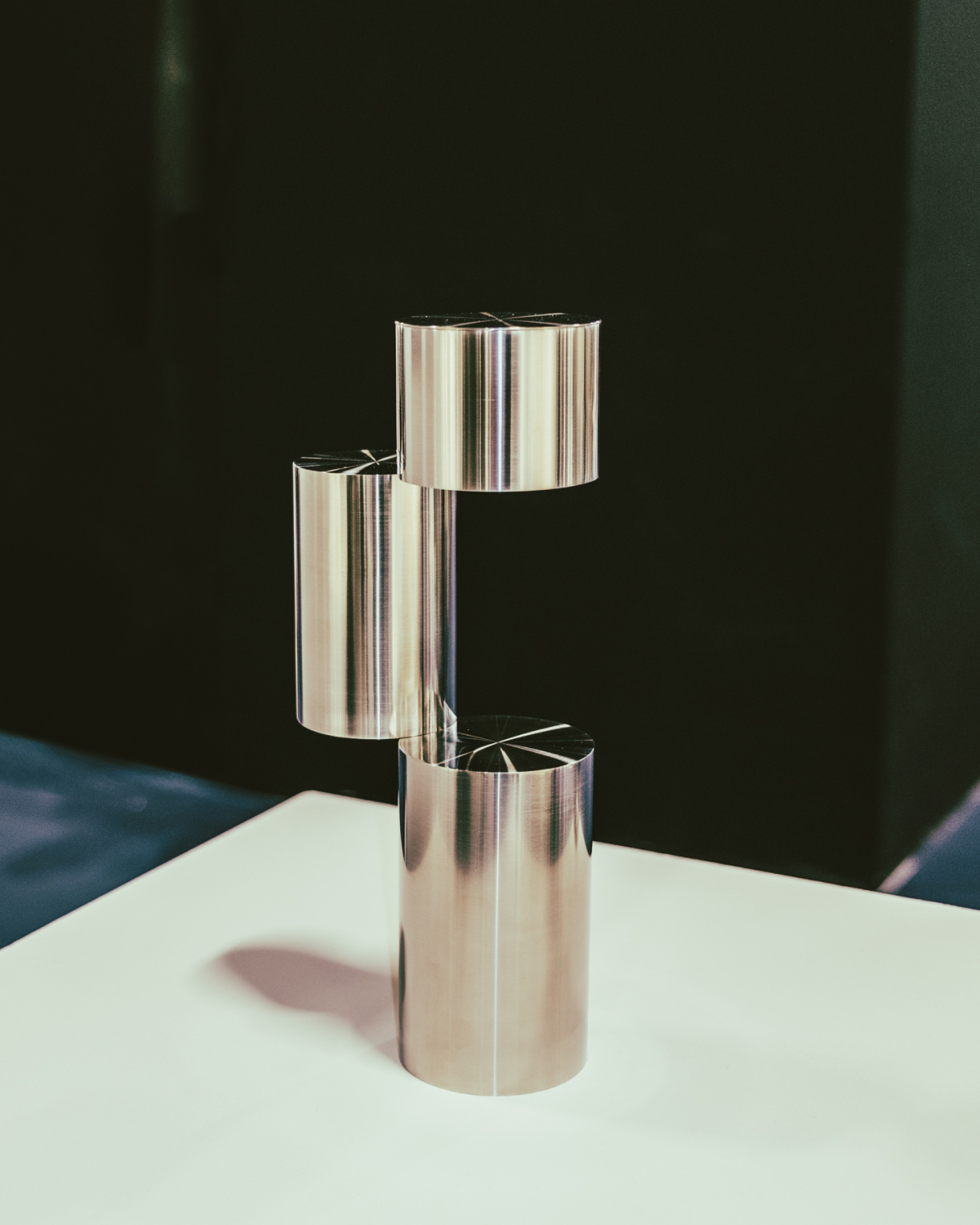 - Moment, designed by Kotaro Usugami, is a sculptural table lamp of interconnecting stainless steel tubes, evoking a sense of time suspended through its floating, rhythmic form. Photo by Chris Force