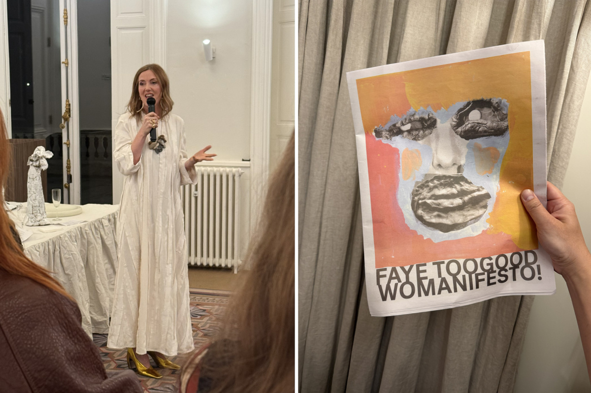 Left: Faye Toogood accepts the award for Designer of the Year at the British Embassy. Right: Faye’s zine “WOMANIFESTO.” Photos by Chris Force