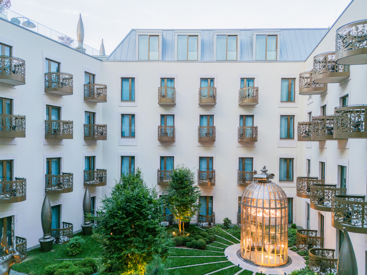 Stepping outside, the hotel’s courtyard feels like an enchanted park—a place designed for leisure, wandering, and endless observation. From each balcony, Marcel says there’s always something new to see and recognize. “In a way it’s like a Japanese garden, but in the opposite sense,” Marcel says. Photo courtesy Kimpton BEM Budapest