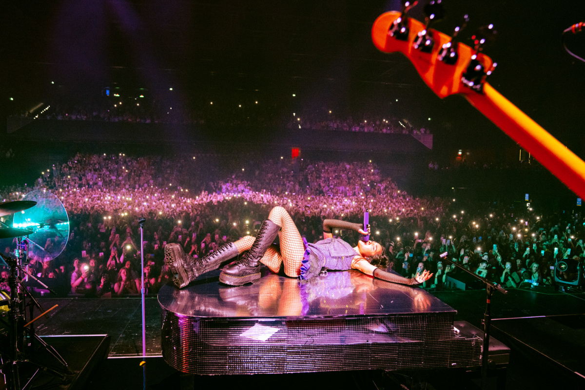 Olivia Rodrigo in front of an audience during her European tour. Photo by Pooneh Ghana
