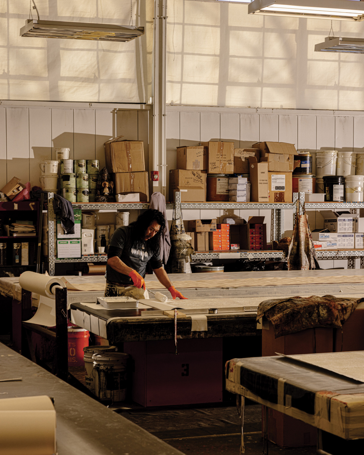 Joyce also emphasizes that the people holding the brushes are the root of the Maya Romanoff culture. Many of the artisans have been with the company for the majority of their careers. Just take Bo, in her 40th year with Maya Romanoff. The studio team consists of about 20 artisans across generations, and many have invited relatives—children, nephews, cousins—to be a part of the crew keeping handcraft alive. “That’s the great thing. It’s family,” says David, who is also Maya and Joyce’s son-in-law.