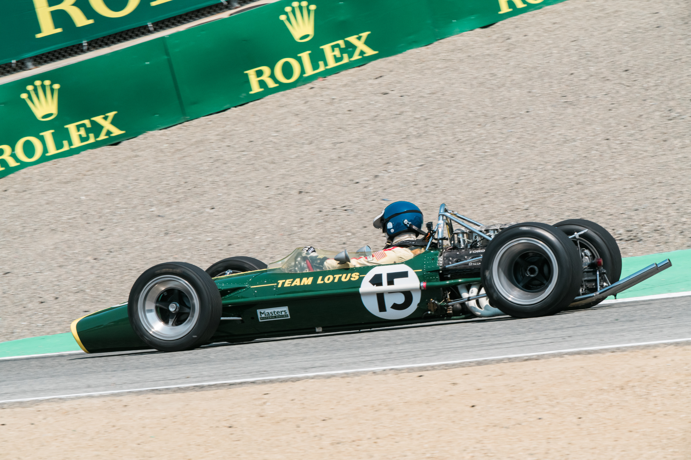 - A 1967 Lotus 49 F1 exits the Corkscrew at Laguna Seca. Photo by Chris Force