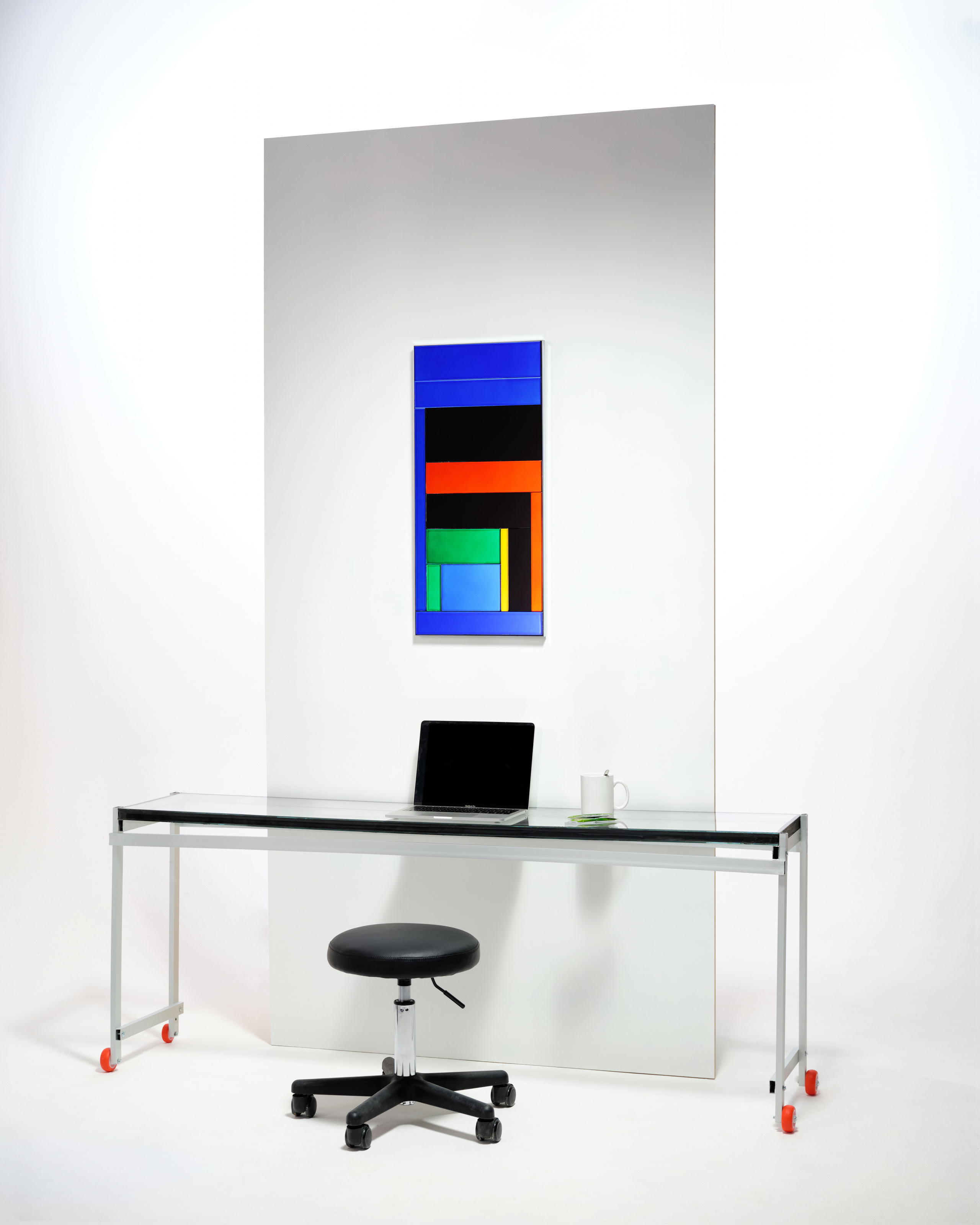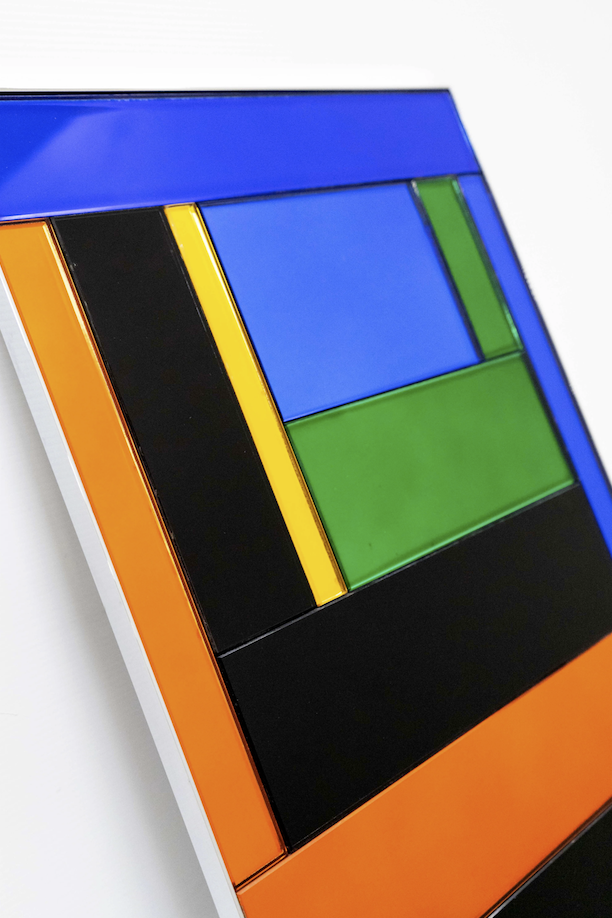 Martin Grasser’s economic mirror is part of his Portraits series that combines Venetian glass and abstract color-blocked imagery from a type generator he created. Martin, who also designed the Twitter logo (now X), has been exploring generative art on the blockchain. His collaboration with the gallery TRAME uses algorithms to transform letterforms into colorful visual languages.