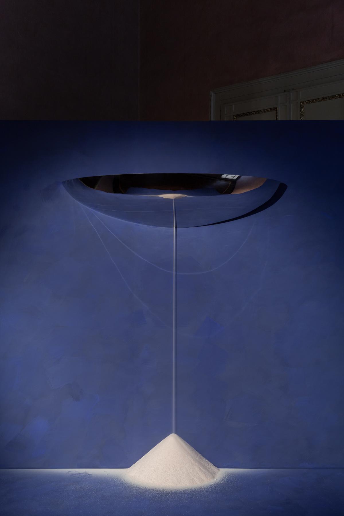 - Omi Iyọ by Nifemi Marcus-Bello exhibited at 5VIE at Palazzo Litta, Milan. The polished stainless steel references the bottom of a boat and acts as a mirror for reflection. Photo by Amir Farzad