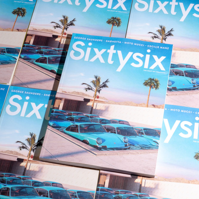 Our first print issue was created with you in mind, the professional who must come up with ideas, in one form or another, day in and day out as part of your work. You might be just starting out, full of zeal, lust, and misplaced focus. Or maybe you’re well recognized and established, wondering about your legacy. No matter where you are in your career, this magazine is for you—the quest to make your best work never ends. With Sixtysix, we hope to help you do that, while making a few friends and having some fun while you’re at it.