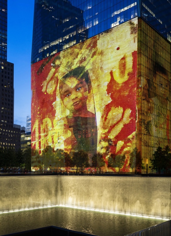 The Ancestor Spirit Portraits of I Was Here projected at One World Trade Center Plaza