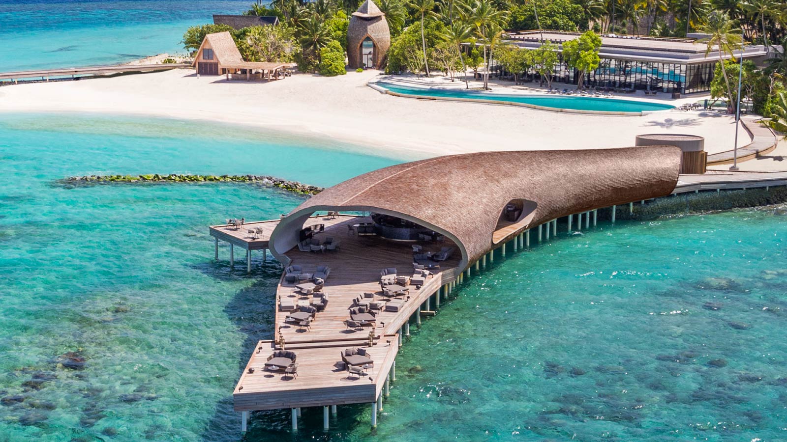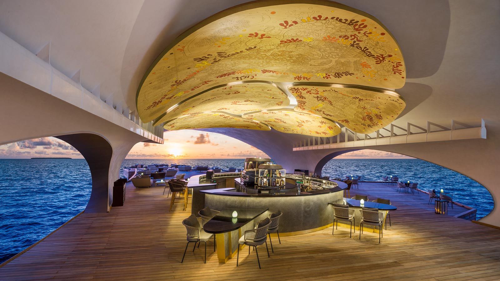 Ocean-facing view of The Whale Bar at the St. Regis in the Maldives.