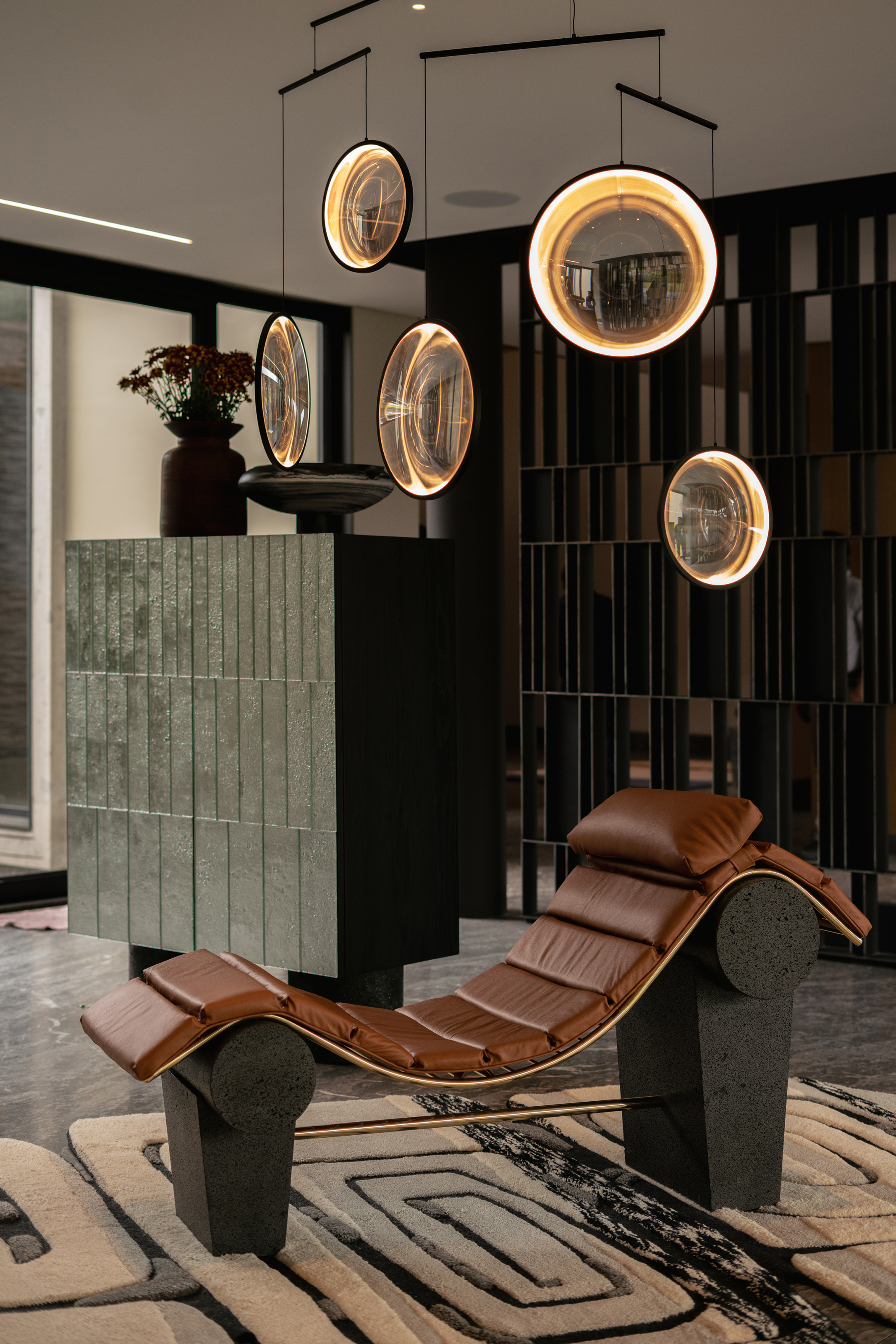 OMET is also debuting Lorena’s first forays into furniture design. She presents “Luna,” a chaise lounge that delicately balances its cushioning between two stone supports. The lounge is available in either volcanic stone or travertine, materials strongly linked to Aztec and Mayan artifacts. Carved from hand, they demonstrate the persistence of Mexican tradition passed on through generations, from ancient civilization to modern living.