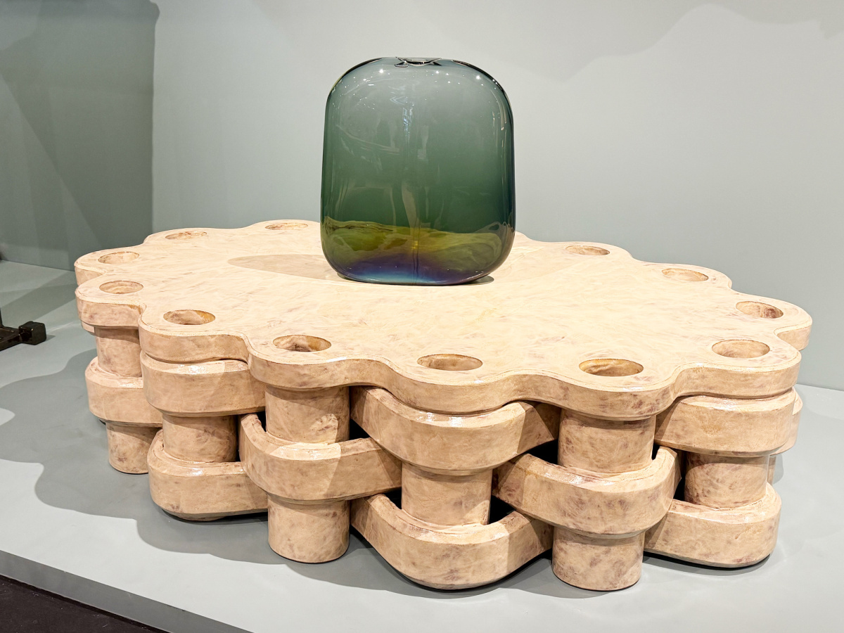 - The Deep Vase exhibited at Design Miami 2025 ontop of a new coffee table from Floris Wubben. Photo by Chris Force