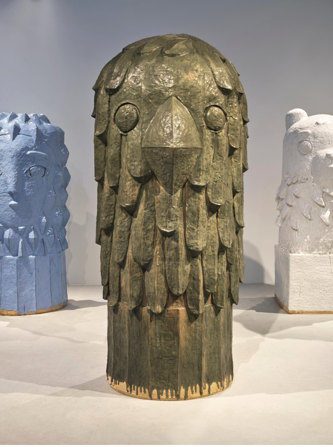 There were many places at Design Miami where design and fine art met. Laurent Dufour’s monumental green matte Bird, a Jun Kaneko meets Jaime Hayon mix, turns clay into a kind of animated architecture: a 1,150-pound, indoor-outdoor totem produced during a Long Beach residency.