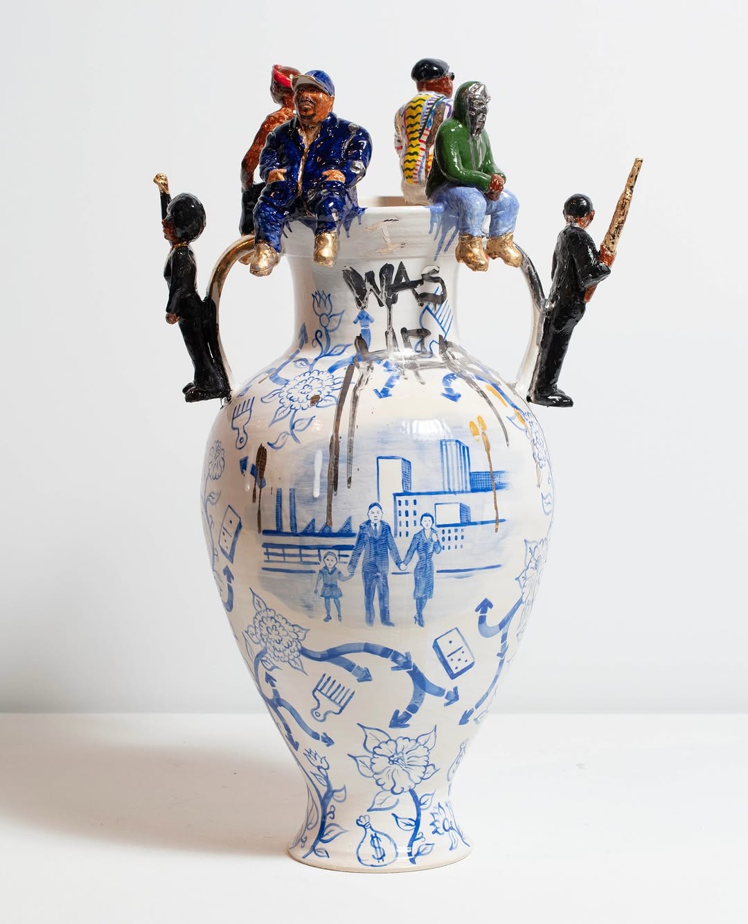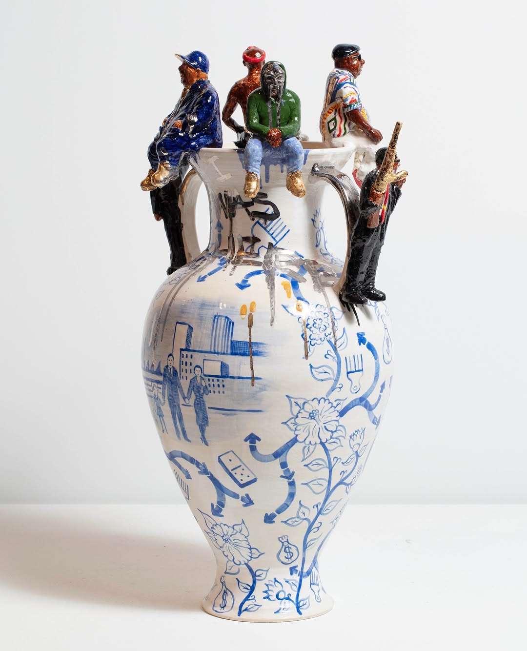 - Food Stamp Ware: Delft Pottery, 2025 by Roberto Lugo. Photo courtesy of R & Company.