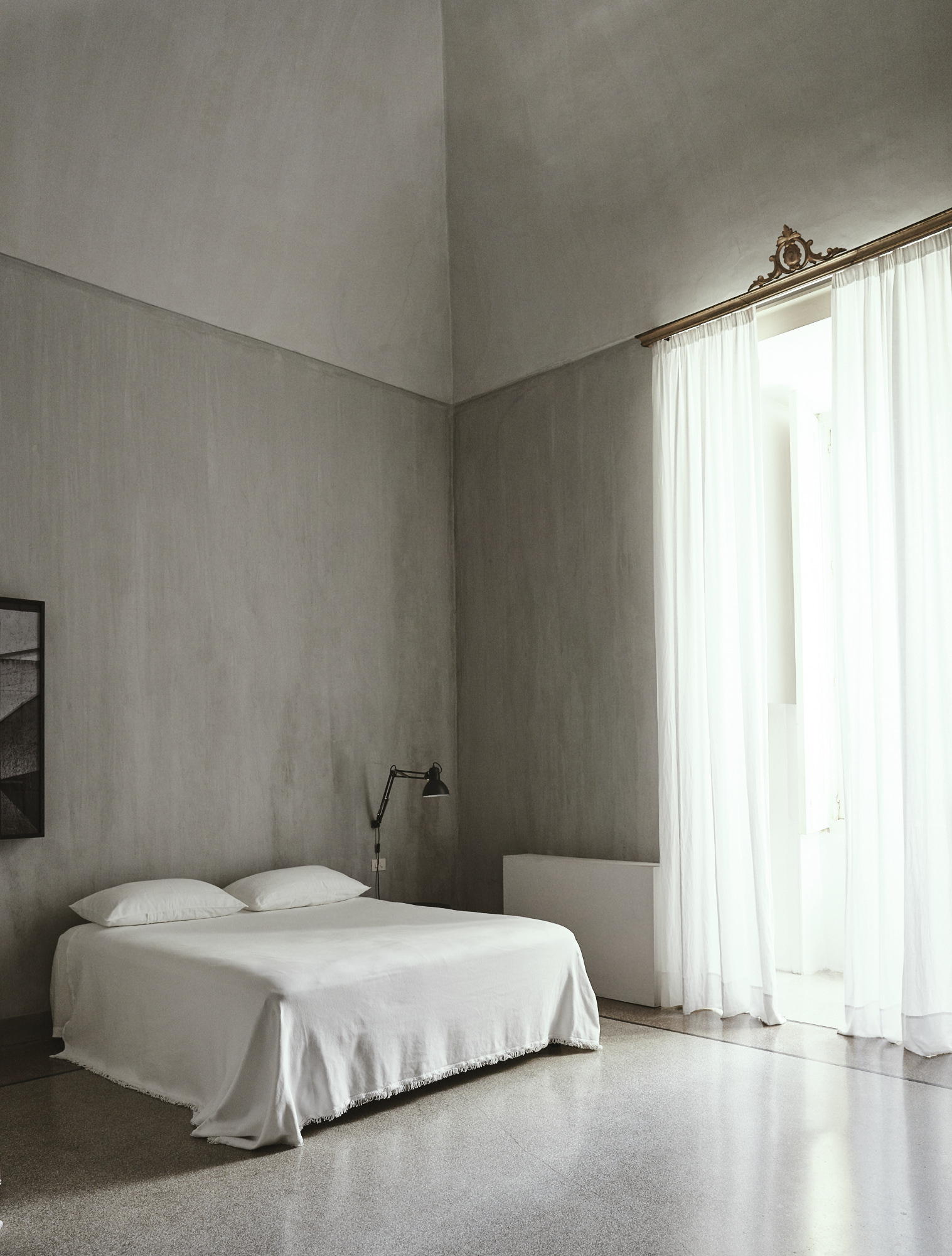 Painted walls fade to bare ones. Functional spaces and artistic minimalism mix with decadent remnants of the 19th century. “Even the room itself becomes the setting of life, past and present, our memory and those that have lived it before us,” say the architects.