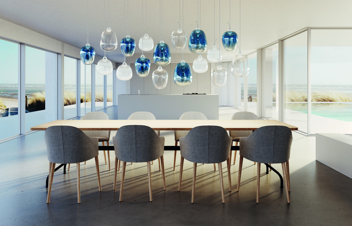 “If I had to describe it, the Murano handblown technique is like whipped cream,” Paola says. “Borosilicate is thin, like water. Everything about the design is subtle. Nothing is bulky, and nothing occupies your space. It’s there—but maybe not.”