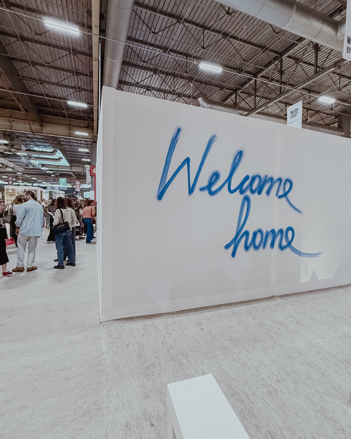 - Maison&Objet welcome sign with the little house from Amélie Pichard’s “Welcome Home.” The motif comes from this edition’s poster, a teapot house conceived with ceramicist Blumen and artificial intelligence, a curious note for an installation centered on makers.