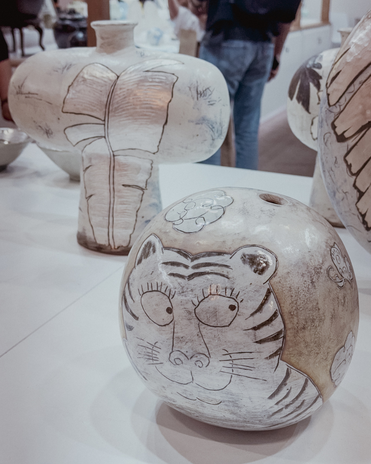 Every year I cave for one animal object. This time it was Doing Goods’ Blooming Black Bear Rug (left), a hand-tufted 100% wool piece with a cotton backing from the brand’s Tapis Amis line, cheerfully more textile than taxidermy. On the more serious side, I admired a buncheong ceramic by Seoul-based Huh Sangwook (right), known for animated motifs rendered with sgraffito.