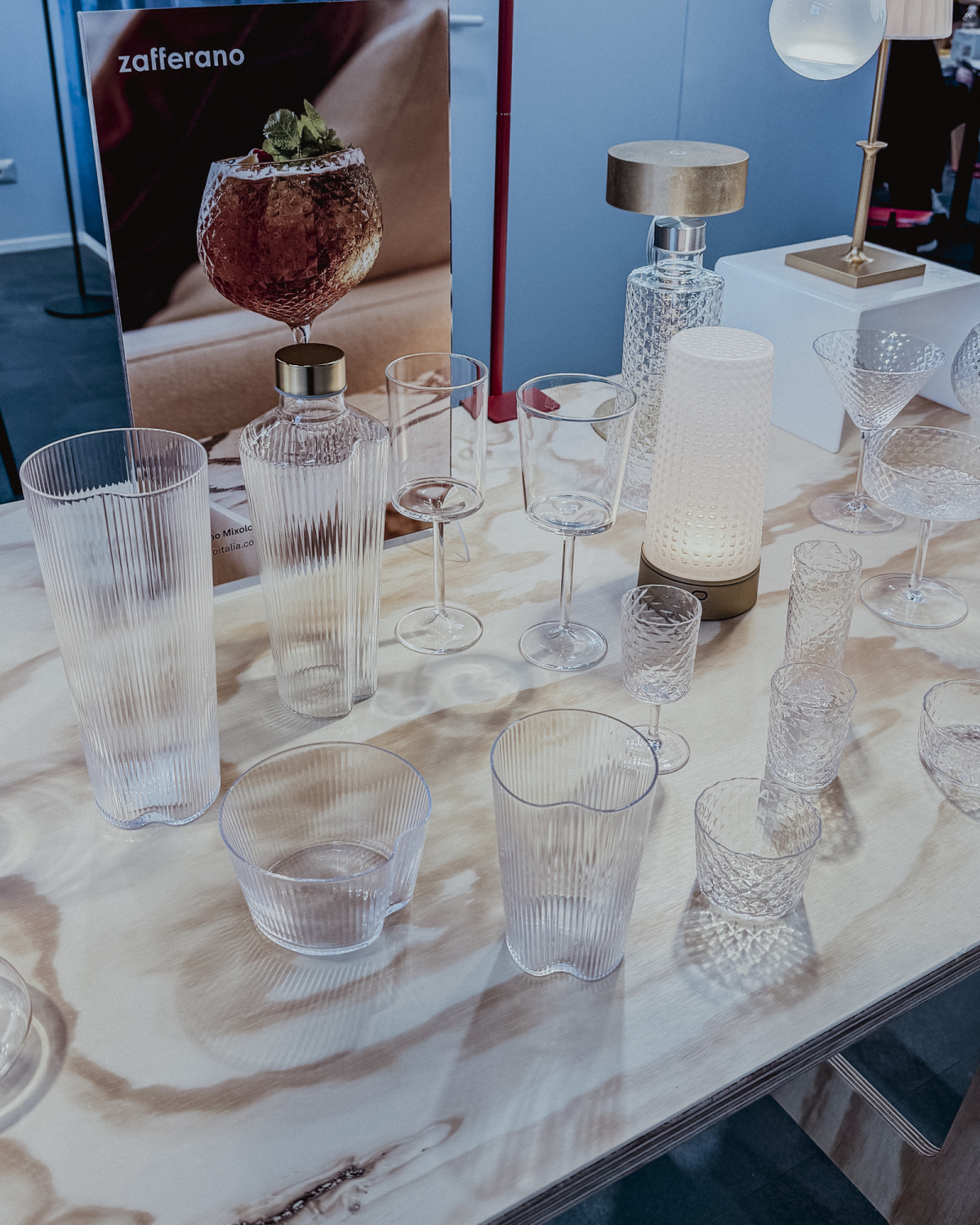 The fair had no shortage of beautiful objects and glassware. Two standouts: the fluted pieces from Zafferano (left), the Venetian-founded brand known for colorful restaurant glassware and its Murano-inspired ribbing, and Sophie Lou Jacobsen’s (right) tastefully squiggly borosilicate glass pitchers, part of the New York designer’s ongoing exploration of playful yet useful table forms.