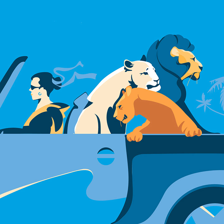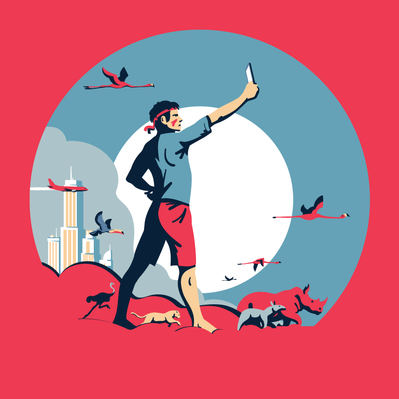 Nikolai Senin has done graphic illustration work for some of Russia’s biggest companies, including energy titan Gazprom and Aeroflot, the country’s de facto national airline, but it’s the personal work he shares on his website and Instagram that really caught our attention. Often using nature and wildlife as subjects, the Saint Petersburg-based graphic designer—who also works under the handle Parkol Design—makes clear but non-didactic references to ecology, environmentalism, and issues of conservation. (He started drawing at the age of 2 and grew up illustrating only animals before his interests expanded.) His designs—Wacom- and Photoshop-sketched; finished in Adobe Illustrator—pop with crisp, bold colors; compositional restraint; and a keen sense of perspective.