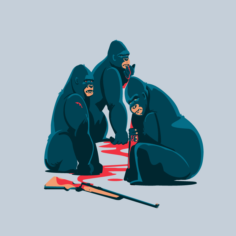 One of Nikolai’s favorites, this design references the killing of gorillas in Congo. COURTESY OF NIKOLAI SENIN.