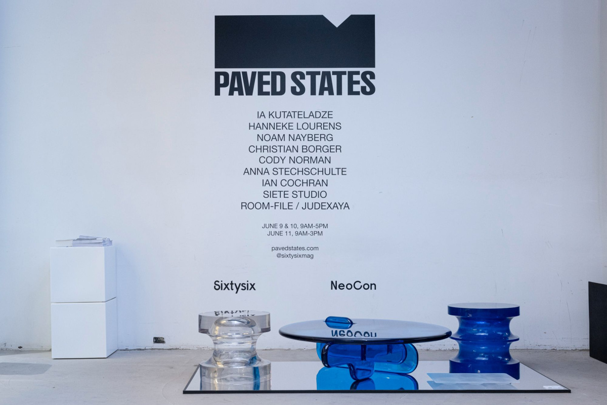 - Anna Stechschulte’s Bubble chair took on new life in our brutalist setting. “My work is usually seen in a different context, so Paved States was a great opportunity to see something that is a fresher look,” she says. “I tend to work with really vibrant colors and very soft pastels, so it was really nice to do something in a more clean, brutalist type of setting.”