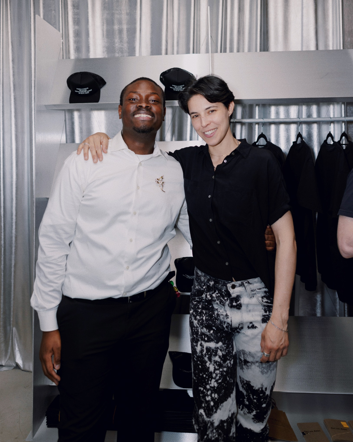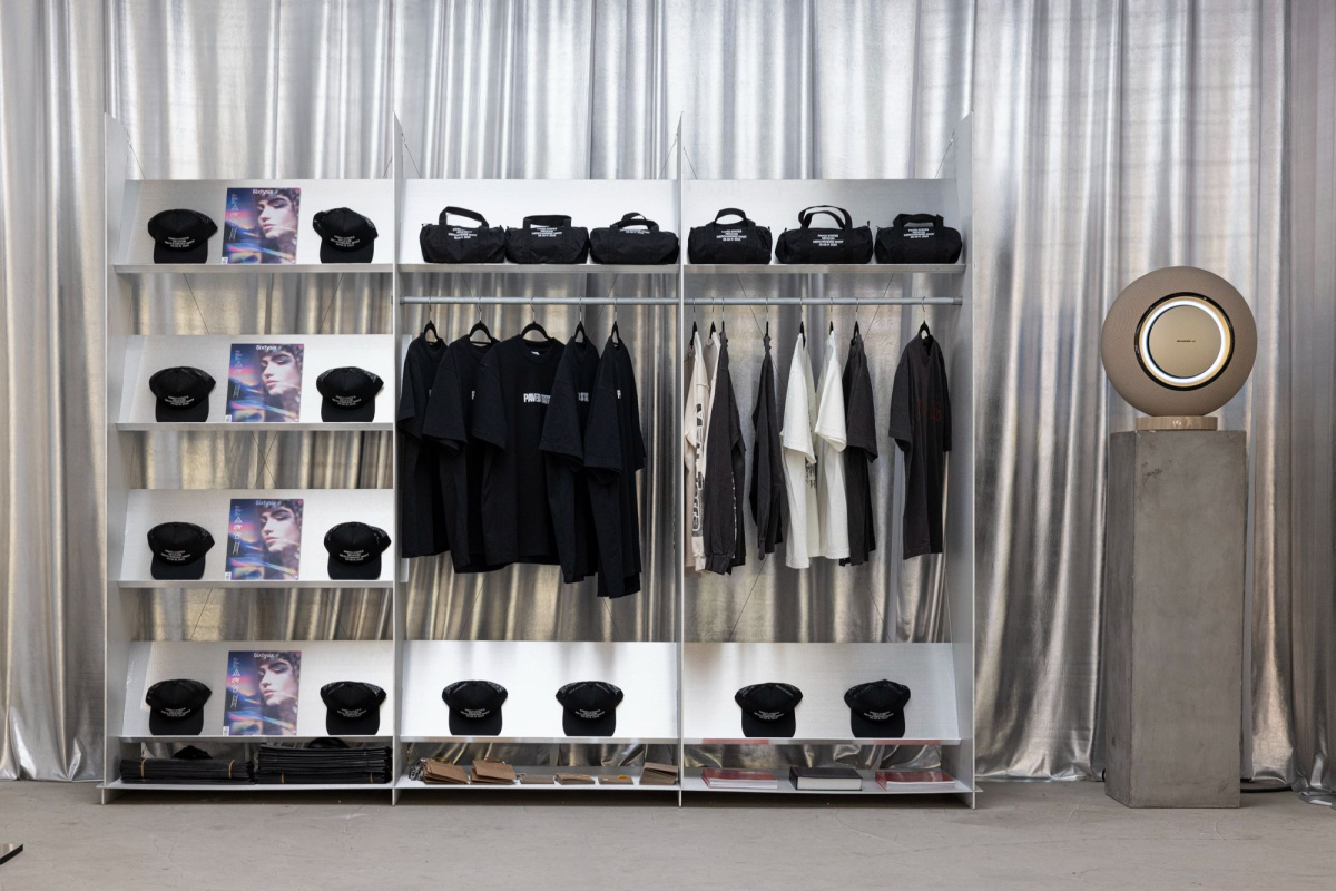 Beyond furniture, PAVED STATES extended into a retail environment featuring small objects, home goods, scents, and wearables. Visitors can shop pieces by For Us, Dear, Sinead Cleary Ceramics, Rory Pipia, Clue Perfumery, Sofia Elias, Binaurale Fragrances, and Noel Mercado, offering take-home pieces that carry the show’s material focus. Throwing in some Lella and Massimo Vignelli classics through Heller Furniture also connected the design dots across generations, and Todo Pasa’s custom merch looked perfectly at home on metallic shelves.