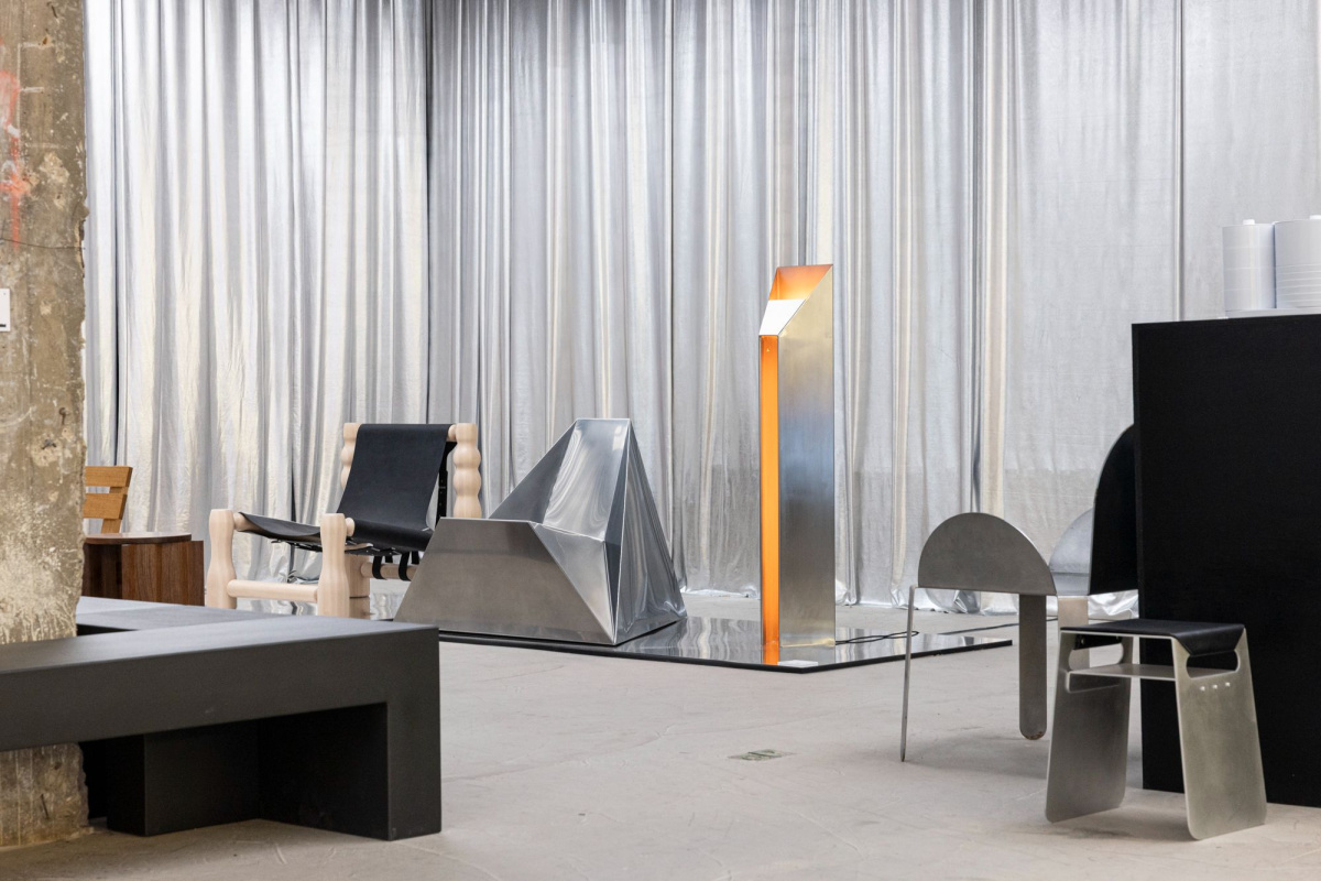 JUDEXAYA‘s mysterious Tetra Chair—based on geometry’s most elemental form—embodied the kind of functional art we were after. “It’s seamless in its form. There’s no traces of manufacturing, it’s all one piece,” they said, maintaining an air of mystery around their materials. “We don’t disclose this material. It’s just a metallic essence.”