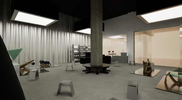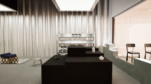 Beyond furniture PAVED STATES extends into a retail environment featuring small objects, home goods, scents, and wearables, offering take-home pieces that carry the show’s material focus. Rendering courtesy of Points of Sail