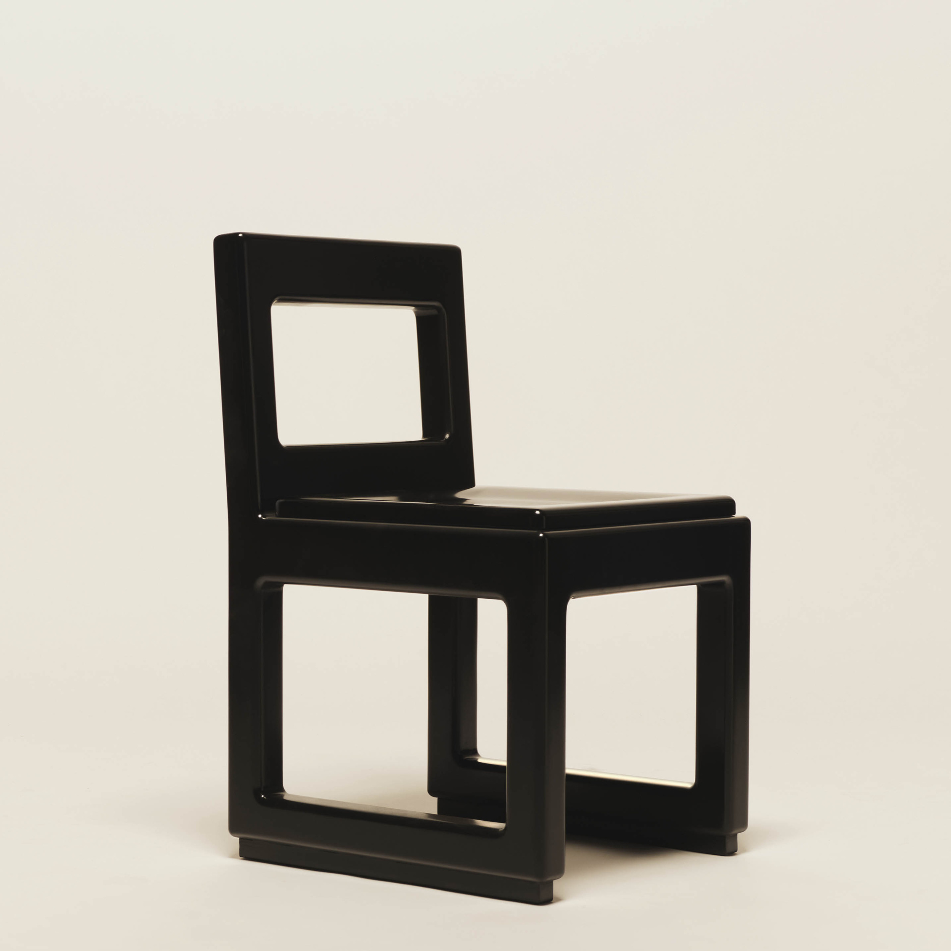 The chair’s frame was formed using soft right angles and a high-gloss lacquered finish. “I wanted the chair to be approachable but have a sexiness to it,” Willett says. “I love lacquer … it’s a complicated finish that really responds to its surroundings.”