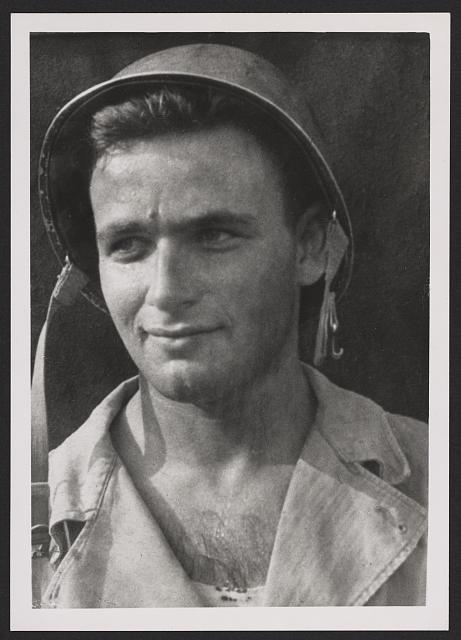 - Victor A. Lundy wearing military helmet in 1944. Photo courtesy of Victor A. Lundy Archive, Library of Congress Prints & Photographs Division.