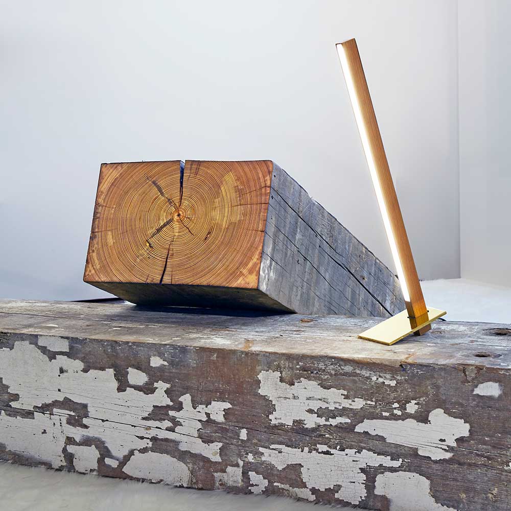 Founded in 2012 with Russell and cofounder Christopher Beardsley, one simple and sleek light turned into a beautiful modular system that appealed to the duo’s sensibilities as trained architects. Russell and Chris met in an architecture studio undergraduate program at Yale University, before the young architects set out to design a collection with the least number of parts possible—with connections that make the pieces easy to separate for maintenance, recycling, or reuse. They used reclaimed and sustainably sourced woods and LED technologies, and they manufactured locally in Long Island City. “By limiting the possibilities you’re willing to accept in terms of design solutions, you end up with these very small, beautiful quiet moments that have big effects,” Russell says.