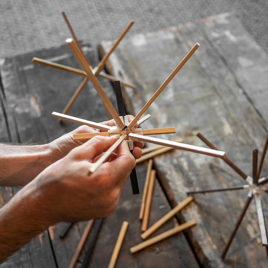 It all started with a stack of wood. Russell Greenberg started design consultancy RUX Studios in 2008, taking on a balance of creative and client work when, a few years later, a light bulb went off. He was immersed in projects—including a design for a house that would ultimately never be built. The house needed a special light fixture, and when Russell saw a pile of wood on the verge of being trashed, he stepped in to repurpose it. From that moment, Stickbulb was born.