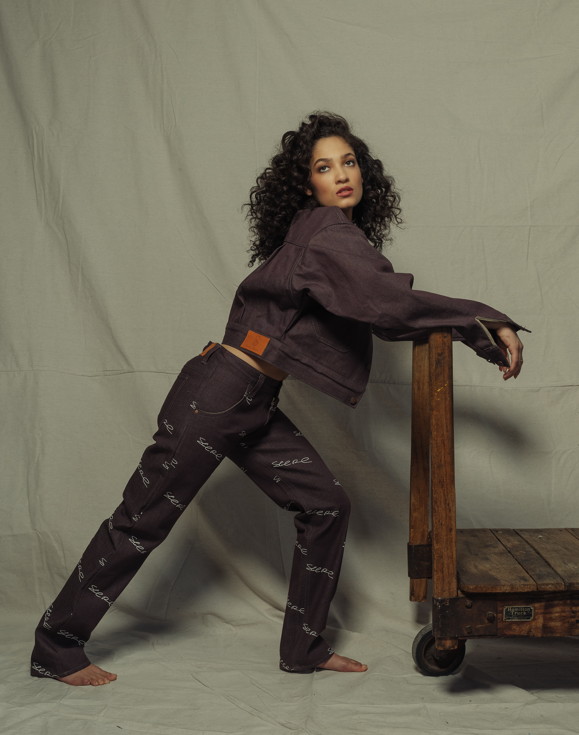 - Eggplant denim jacket, Signature jeans by Sheila Rashid.