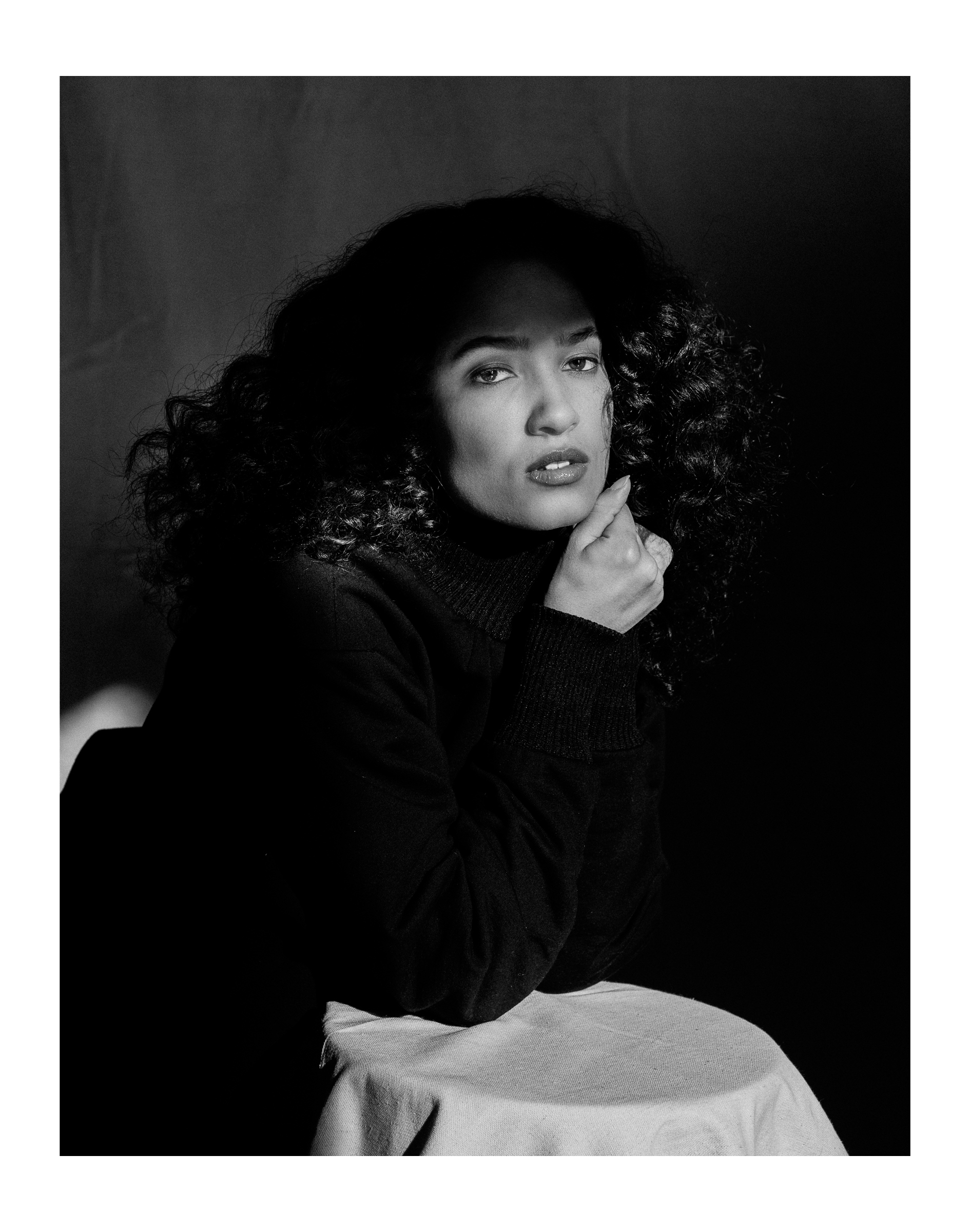 - Black turtle neck by Sheila Rashid.