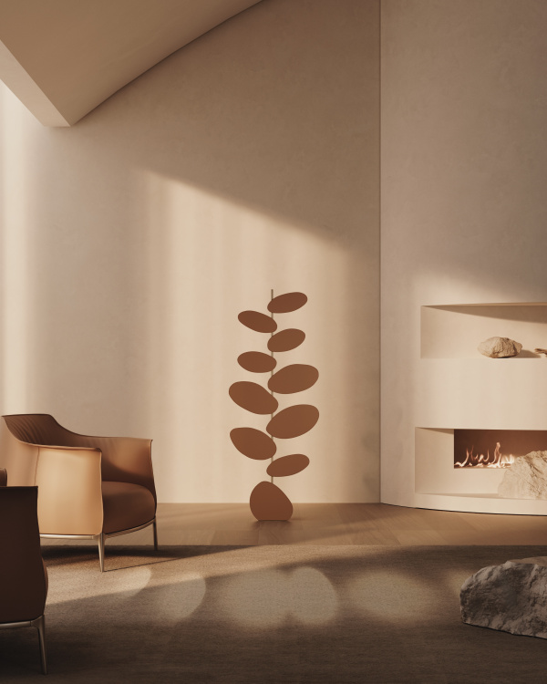 In the years since, he’s become one of the most recognized digital artists working today. You’ve almost certainly seen and liked one of his otherworldly interior renderings. Now for the first time, that language takes a physical form. In collaboration with Poltrona Frau—Italy’s century-old furniture house—Six N. Five has created a trio of objects that translate light into matter: a sculptural floor lamp, a celestial table lamp, and a silk rug. Each piece began as a digital sketch rooted in Ezequiel’s deep fascination with light, before being interpreted by Poltrona Frau’s craftspeople.