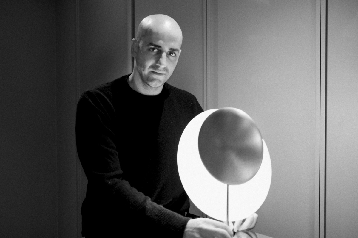 Ezequiel Pini with the Moonbeam lamp. Photo by Chris Force