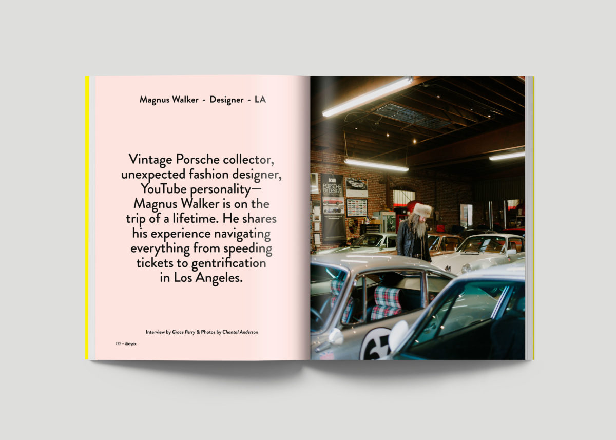Then there’s Magnus Walker, who has become somewhat of a celebrity in the car collecting world. Magnus’ cars, a spread of vintage Porsches from the late 1960s to mid-1970s in red, white, and blue, are an homage to his British-American roots. He soups them up not for work but for pleasure. “I’ve never had a real job. I’ve never worked for someone else. The things I’ve been able to excel at were things I really had a passion for,” he says.