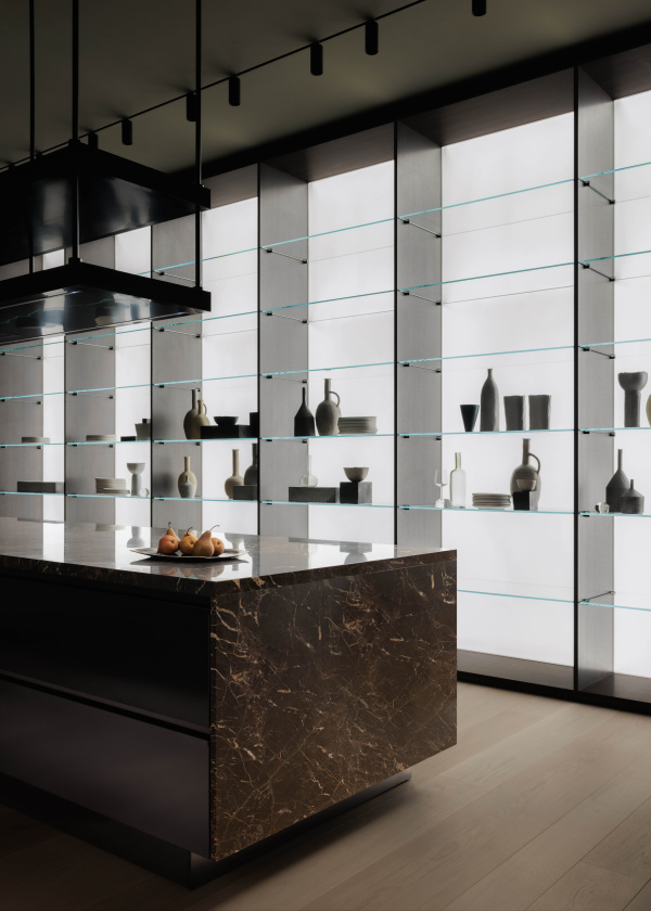 We started by discussing many different details, attitudes, visions, and aesthetics. We had conversations that went on for months about materials, about lighting temperatures, about the exact placement of every appliance. In the end I signed the project, but it was made by many hands. Some hands from Korea—the LG design and engineering teams. Some hands from New York—my own studio, Lissoni Architecture New York, working on the details. Some hands from Milan—my main office coordinating the vision. And then Arclinea for the Italian cabinetry, craftsmen for the custom chandelier, specialists for the LED installations.