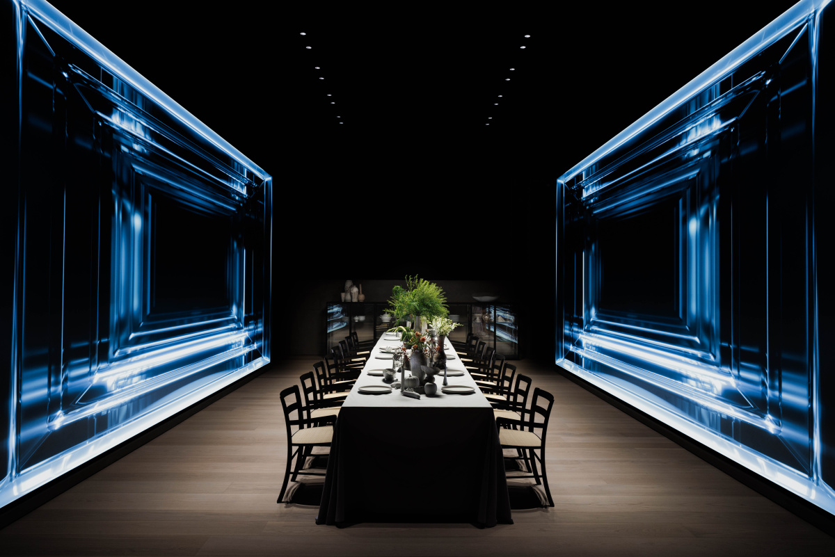 When we started to discuss the LED light show that appears on the table in one of our vignettes, the first thought was, “OK, we’ll design a beautiful still life on the table.” Every two weeks, we need to change everything—fresh flowers, new objects, seasonal arrangements. At the same time I thought, “My God, I’m talking with LG, one of the technological monsters of the world. We need to do something to improve, something to change the paradigm.” So we designed a table that’s made with animation, light, and digital content. We used the dynamic display technology to bring still life to life.